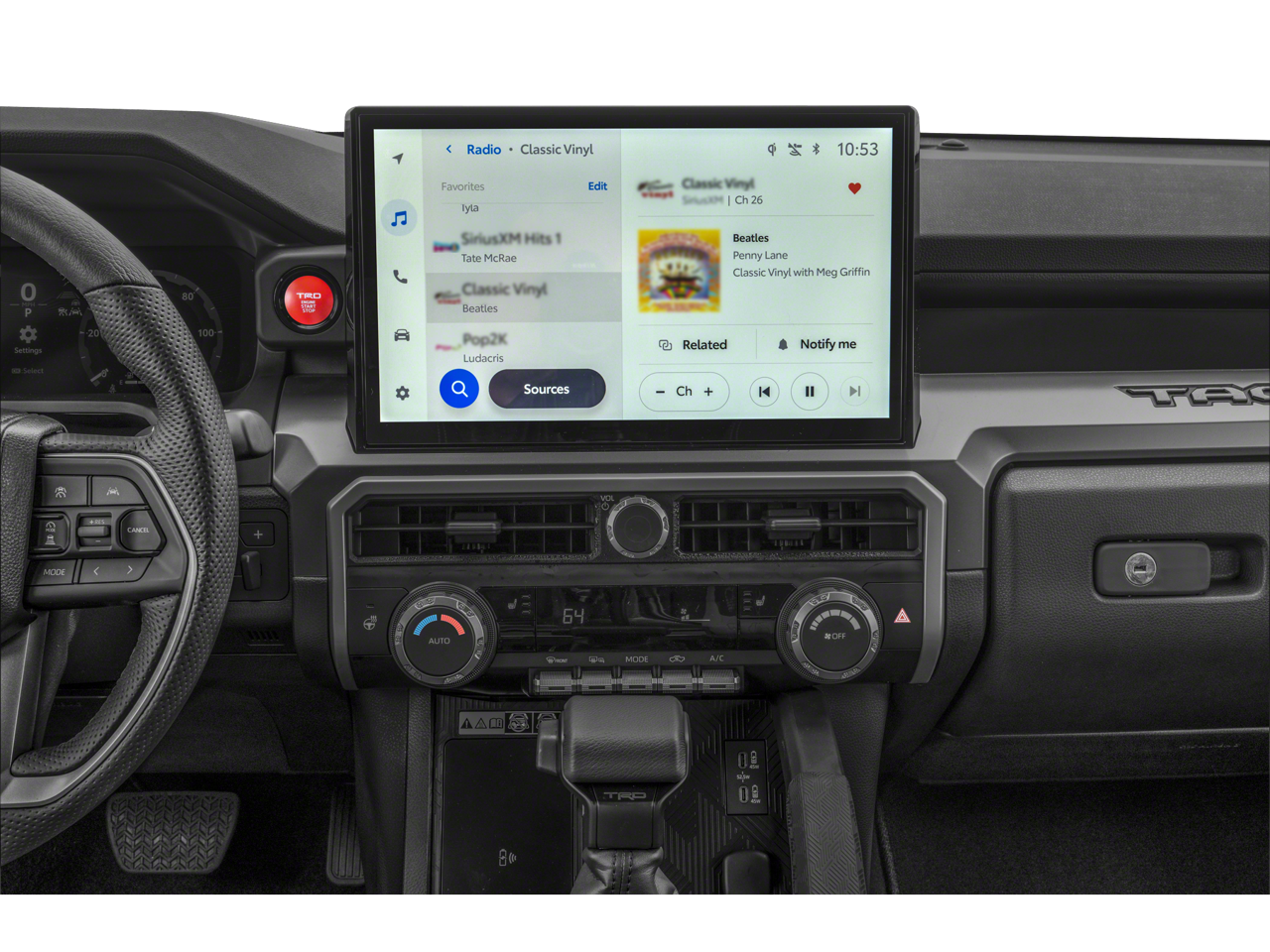 - Radio: 8" Toyota Audio Multimedia -inc: touchscreen, 6 speakers, wireless Apple CarPlay and Android Auto compatibility and SiriusXM w/3-month Platinum Plan trial subscription, See toyota.com/audio-multimedia for details